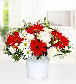 Vazo İçerisinde Kırmızı Gelbera Ve Papatya